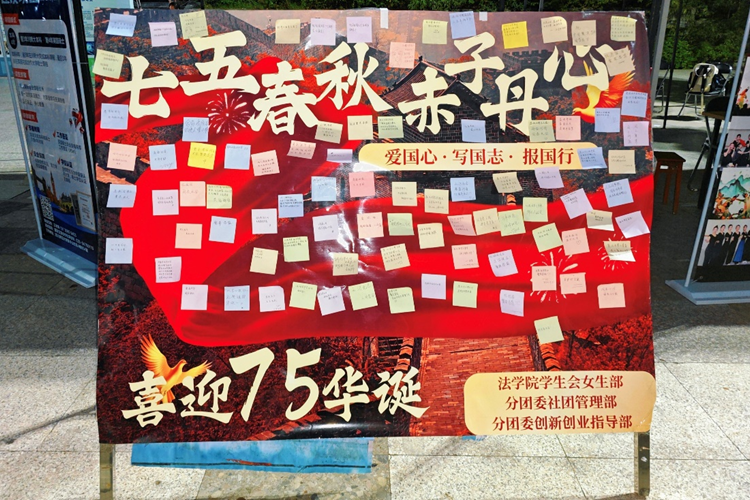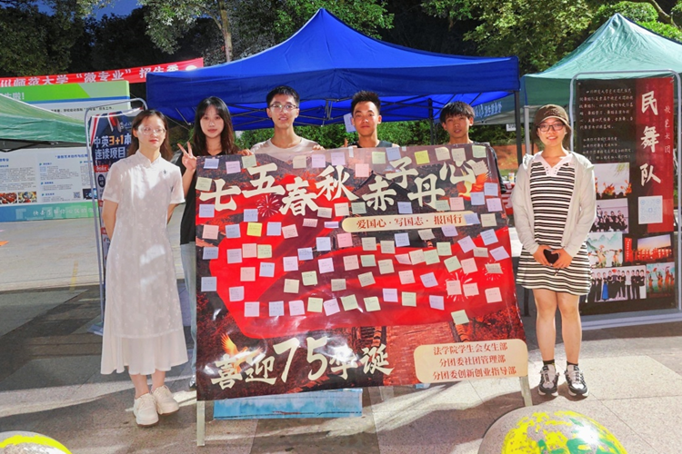 丹心映秋阳,壮志书华章,铭记历史情,共筑中国梦。为迎接祖国七五华诞,弘扬爱国主义精神,2024年9月26日,伟德国际victor1946在生态广场举办了“七五春秋书壮志,万千丹心谱华章”爱国教育主题活动。本次活动由女生部、社团管理部和创新创业指导部共同承办。
