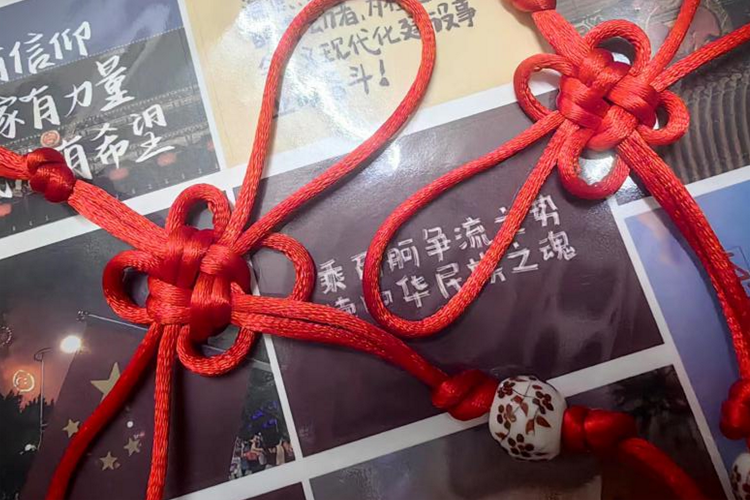 千千结传递千千意,每一缕红线,都承载着对祖国的祝福。亲手编织中国结,将情感凝聚成永恒的纽带,共同织就属于狮山的爱国篇章。