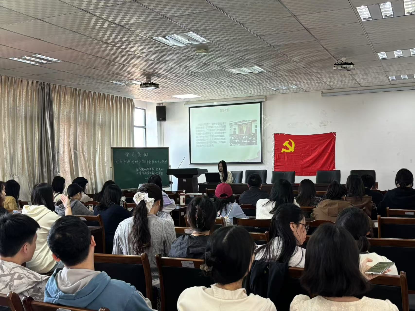 首先,研究生第一党支部李佳瑞同志带领大家学习了“党的二十届三中全会精神”的主要内容。全会最重要的成果就是审议通过了《中共中央关于进一步全面深化改革、推进中国式现代化的决定》。提高党对进一步全面深化改革、推进中国式现代化的领导水平。