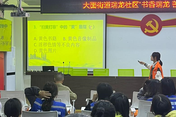 本次普法宣讲结合了法条与相关案例,巧妙地宣传了“扫黄打非”的法律知识,为社区网格员的后期工作展开打下了基础,为社区营造健康向上的社会文化环境贡献力量。