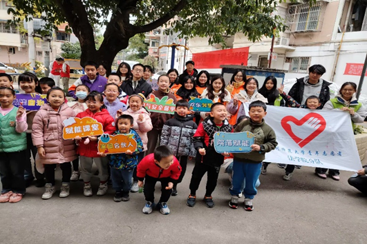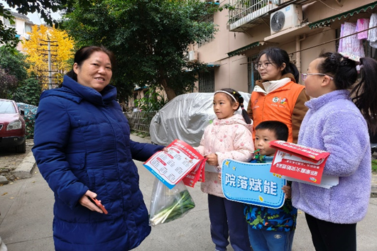 活动最后,志愿者带领社区小朋友一起走向社区,发放宣传单,并在单元门口粘贴“家庭火灾防范”和“预防一氧化碳中毒”的海报,向社区居民宣传“冬季防火”知识。