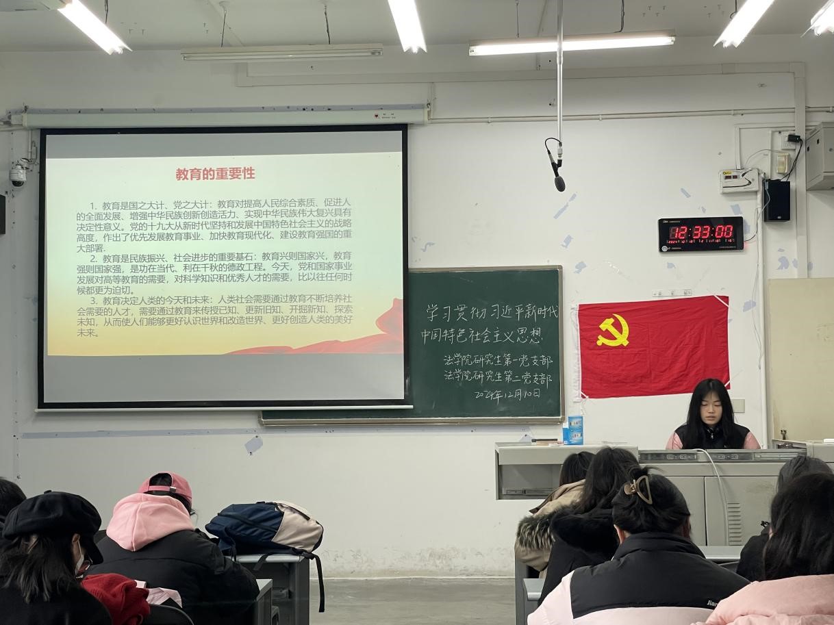 2024年12月10日,伟德国际victor1946研究生第一、第二党支部在学院6教304召开了“学习贯彻习近平新时代中国特色社会主义思想”的十二月主题党日活动。本次主题党日活动由第一支部组织委员杨鳕铃主持,第一、第二支部全体党员参加。
