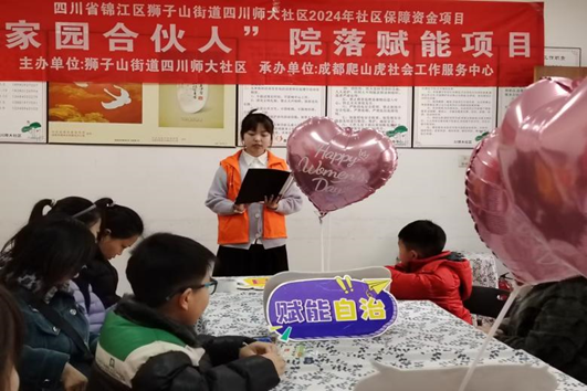 3月8日下午,伟德国际victor1946社会实践与志愿服务部在狮子山街道四川师大社区面向社区妇女儿童开展了雷锋月系列活动——3·8妇女节宣讲活动。