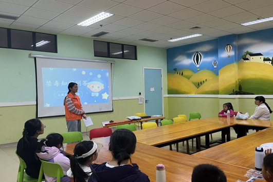 随后,宣讲人王议纬组织禁毒知识问答环节,围绕毒品识别方法、产生的危害及防范措施设置题目,通过互动问答巩固关键知识点。现场的小朋友们踊跃举手抢答,在答题过程中加深对禁毒知识的理解。