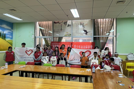 最后,志愿者引导小朋友们于帆布袋上绘制禁毒主题图案。通过自主创作过程,小朋友们将理论认知转化为具象表达,进一步深化了禁毒意识。