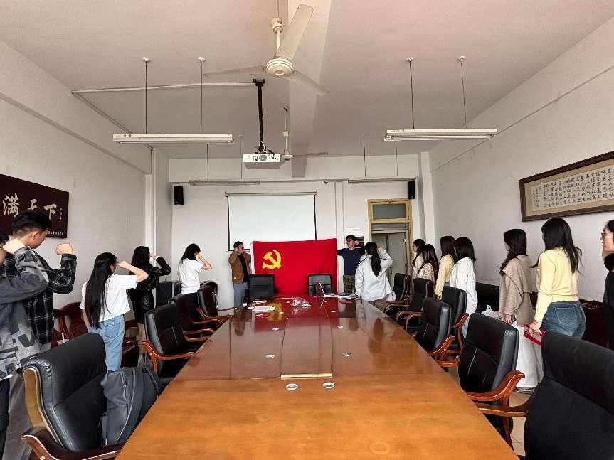 随后,进行会议第二项议程:由杜冰茜同志带领大家重温入党誓词并代表全体党员同志进行了感悟发言。