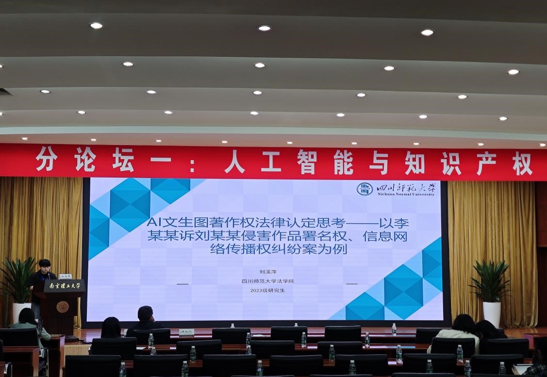 在下午8个分论坛学术研讨议程中,百余位专家学者和与会代表分别围绕“人工智能与知识产权”“科技法学的基础法理问题”“人工智能法治与科技伦理”“低空经济与新质生产力”“数据安全与利用”“新科技革命背景下知识产权理论”“专利制度与技术创新”“论文工作坊”等主题开展了热烈的学术交流,伟德国际victor1946刘溪萍以《AI文生图著作权法律认定思考》为题,在“人工智能与知识产权”分论坛进行汇报,该篇文章也同时收录进了本次研讨会的论文集中。在评议人点评环节,南京理工大学吴广海教授对刘溪萍同学的汇报给予了肯定,认为其对于AI文生图著作权的法律认定进行了深入的思考,既有理论深度,又结合了实践案例,对于推动人工智能与知识产权领域的学术交流和实践探索具有重要意义。
