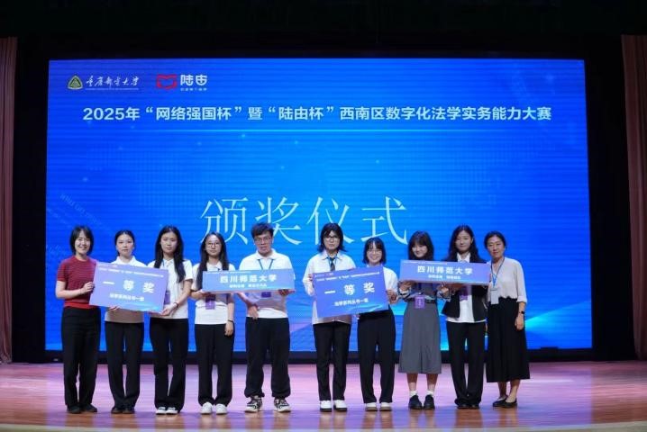 2025年5月24日至25日,由重庆市法学会指导、重庆邮电大学主办、重庆邮电大学网络空间安全与信息伟德国际victor1946承办、上海积途信息科技有限公司协办的“网络强国杯”暨“陆由杯”西南区数字化法学实务能力大赛在重庆举行。来自西南地区的云南大学、西南大学、西藏大学、西南政法大学、伟德国际victor1946、西南石油大学、四川文理学院等十余所高校的21支参赛队伍参加,公司由郭琦老师和彭昕老师带队,组成研究生与本科生两支队伍参赛,并均获得比赛一等奖。
